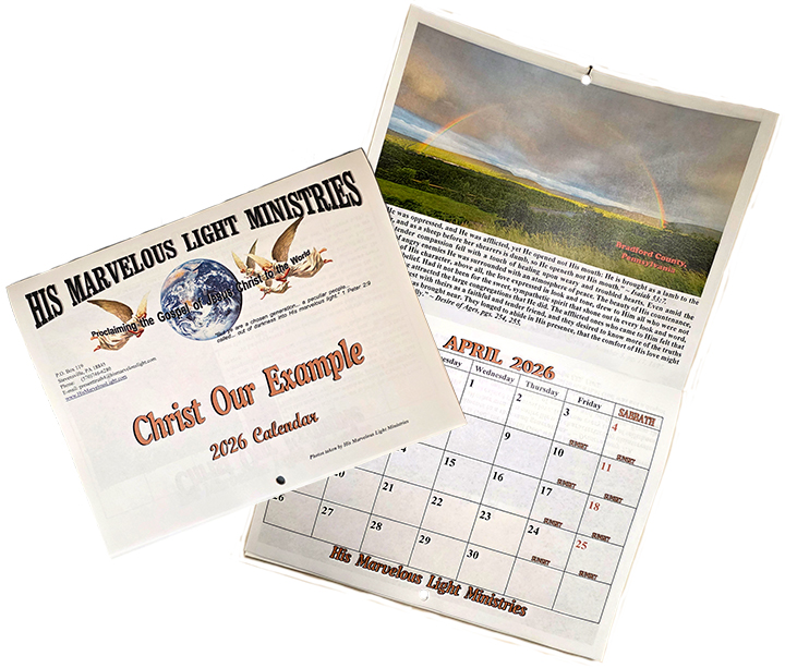 If you are on His Marvelous Light Ministries' mailing list, chances are that you have already, or will shortly be receiving one of these calendars in the mail - our gift to you for the systematic, faithful support you have given to the Lord's work over this past year. If you are NOT on His Marvelous Light Ministries' mailing list, be sure to call or e-mail us, request to be placed on the mailing list, and at the end of the year, as our appreciation for your monthly financial support, you will automatically receive HMLM's special full-color Sabbath calendar! These FULL COLOR, special wall hanging calendars feature the Lord's true Sabbath day, Saturday, set apart in a beautiful GOLD color! These calendars make great gifts! Give one to your friends and neighbors! Only $6.50 each, which includes shipping and handling! (USA ONLY)! For fastest service, you may immediately pay for your order using Paypal! Just calculate how many calendars you would like and send the payment immediately through Paypal to 'presenttruth4@hismarvelouslight.com'. Be sure to let us know the number you would like with your payment.